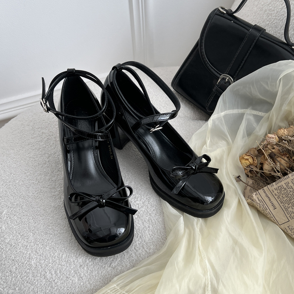 Sweet Bowknot Black Mary Jane Shoes