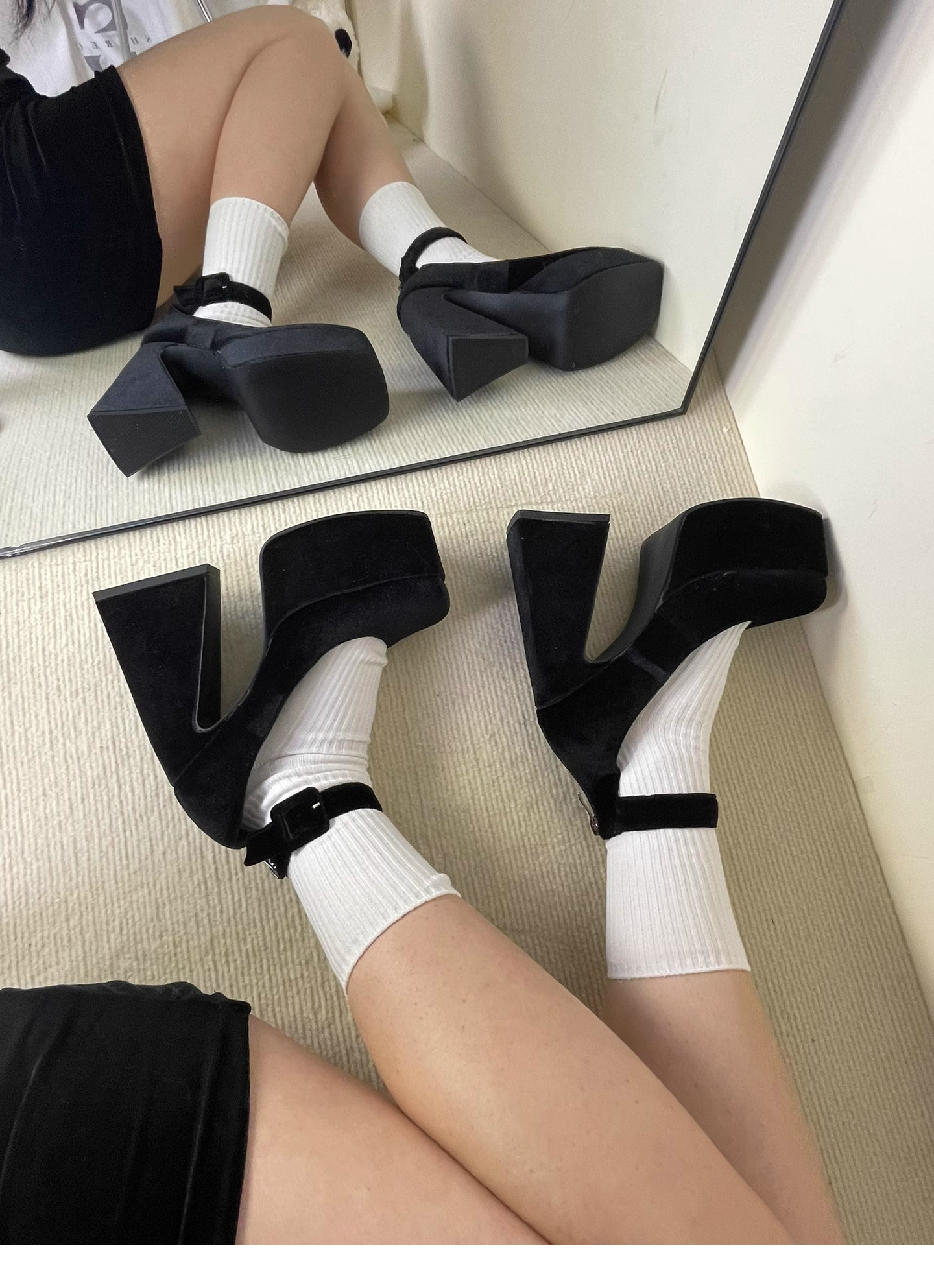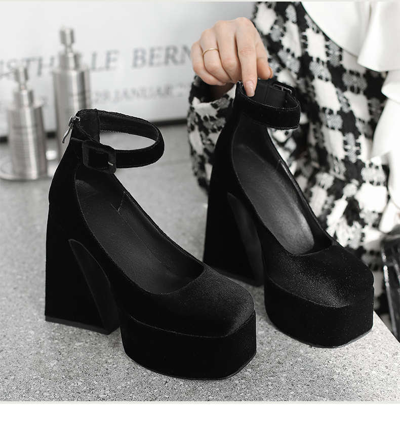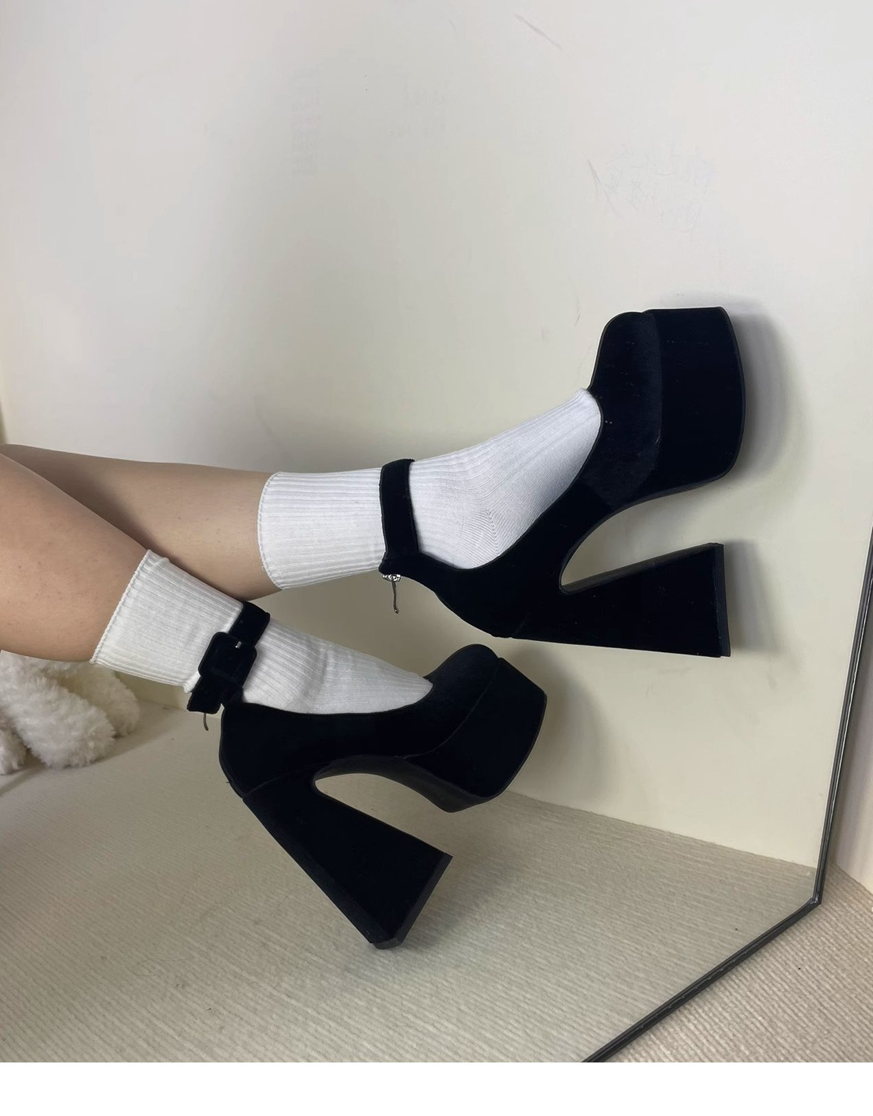 Step into bold sophistication with our Black Platform Mary Jane Pumps Heels! These striking heels seamlessly blend classic Mary Jane style with a contemporary platform design, creating a timeless yet trendy look. Elevate your outfit with the added height and sleek black finish. Make a statement and embrace both comfort and style with our Black Platform Mary Jane Pumps Heels – where elegance meets modern flair with every step.