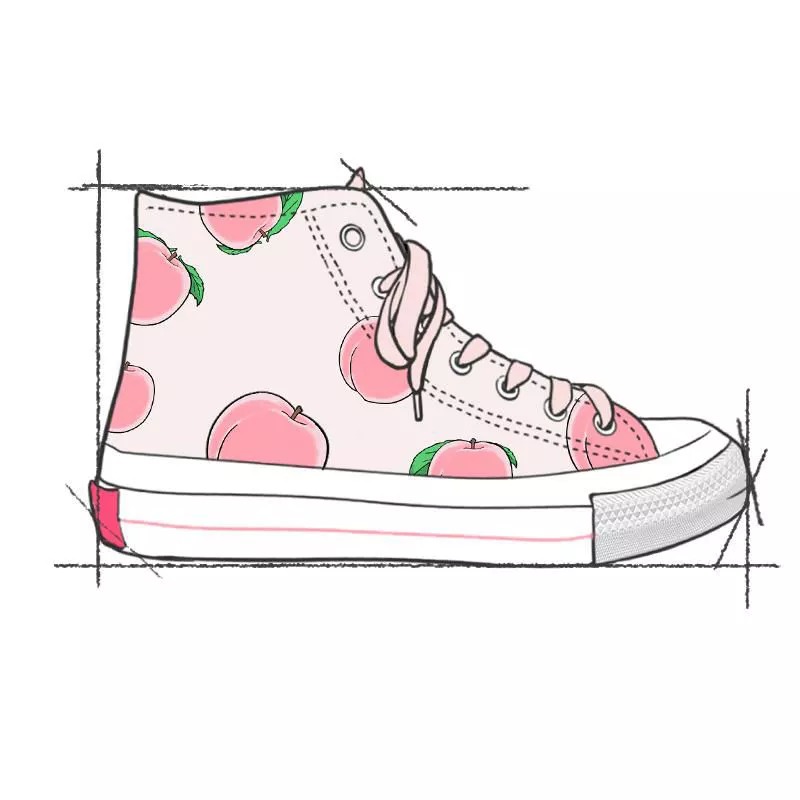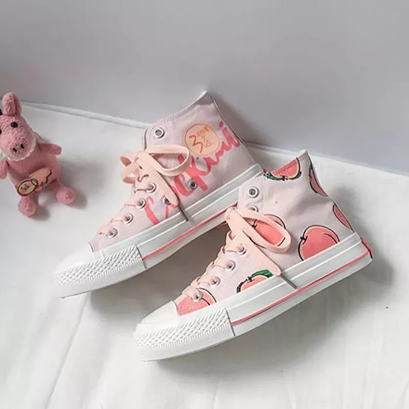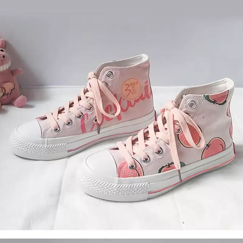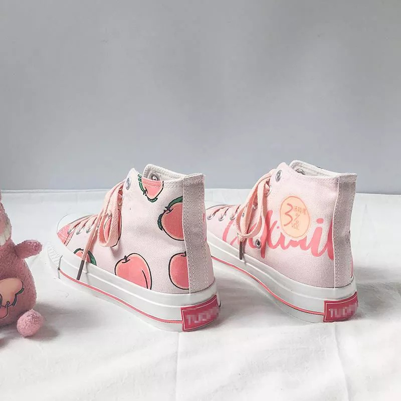 Kawaii Pink Women's Espadrilles Peach Print Canvas Sneakers