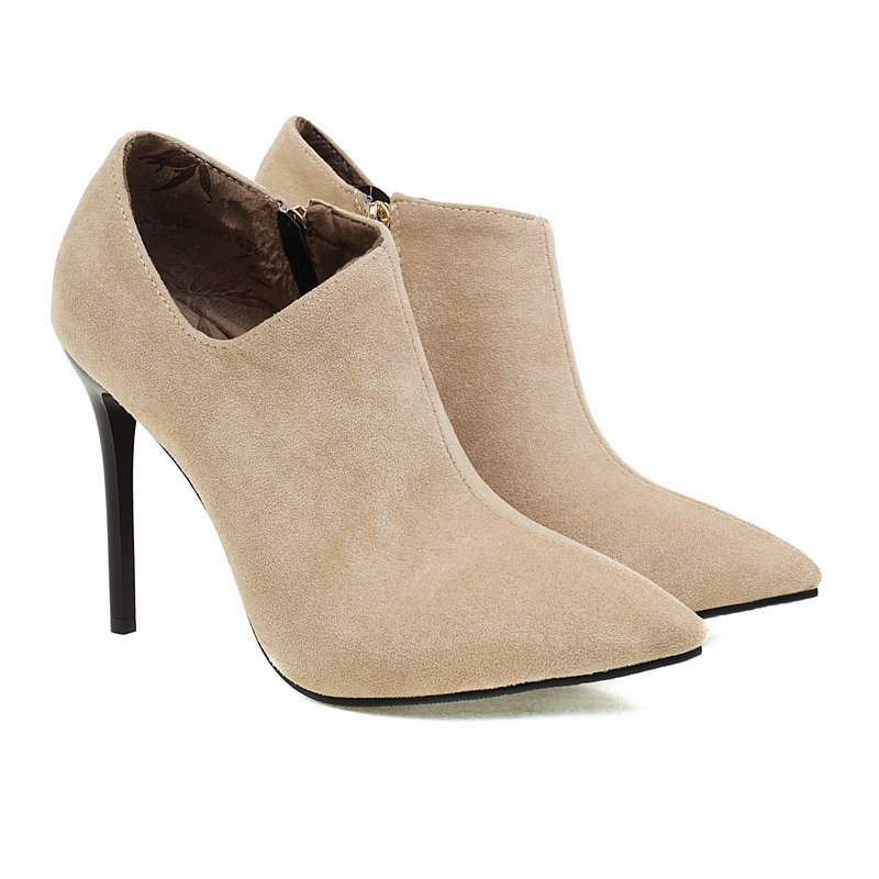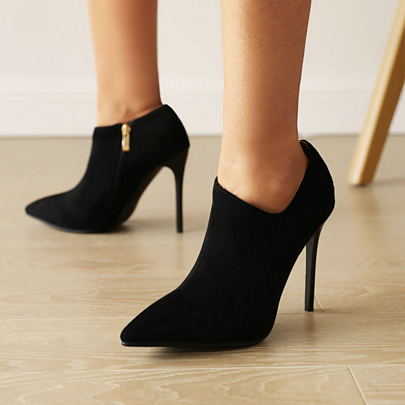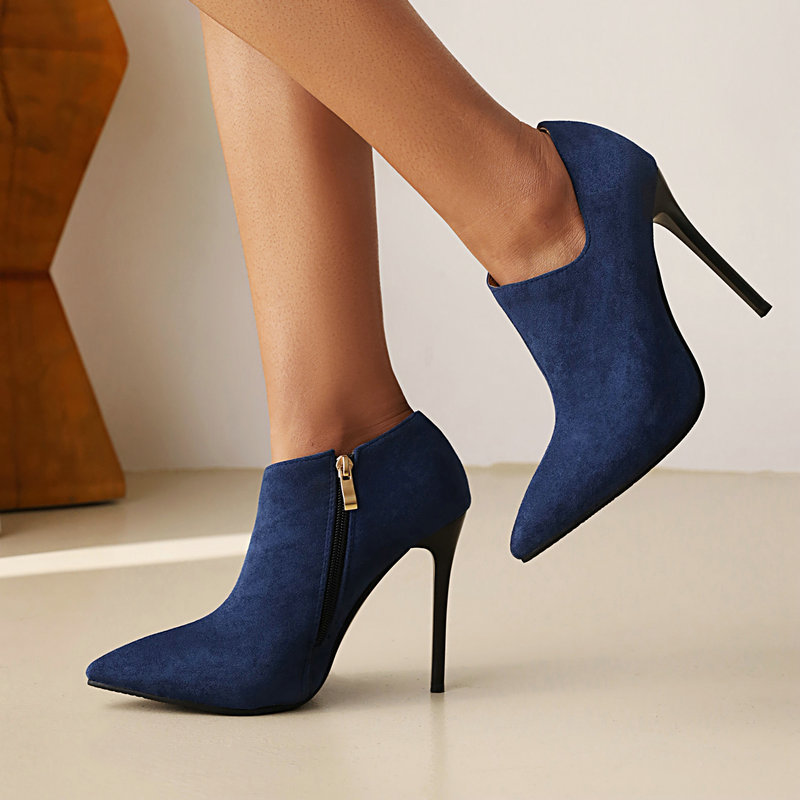 Suede Leather Pointed Toe Heeled Booties- 4colors