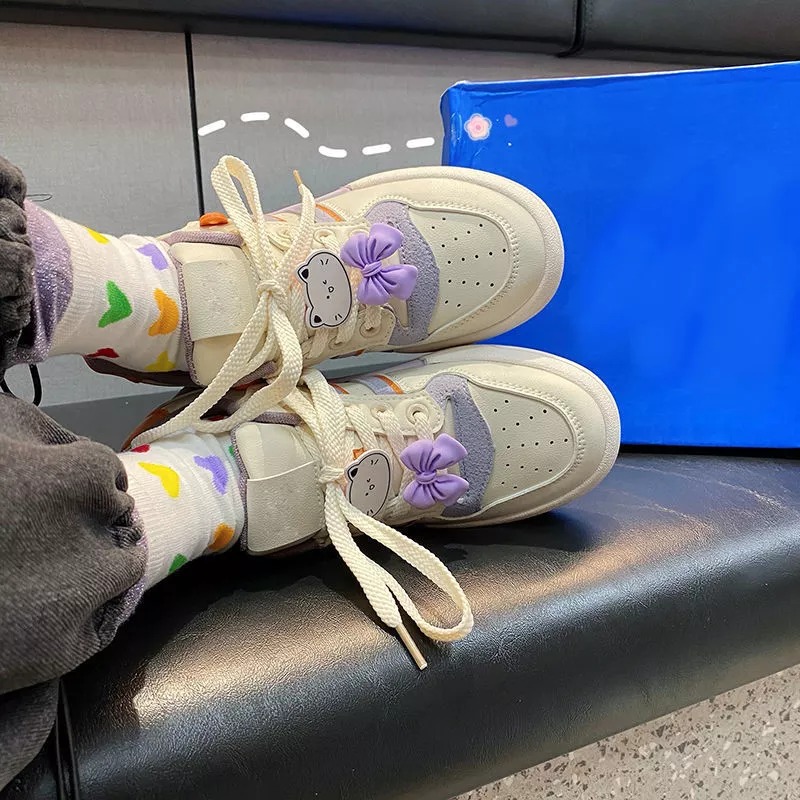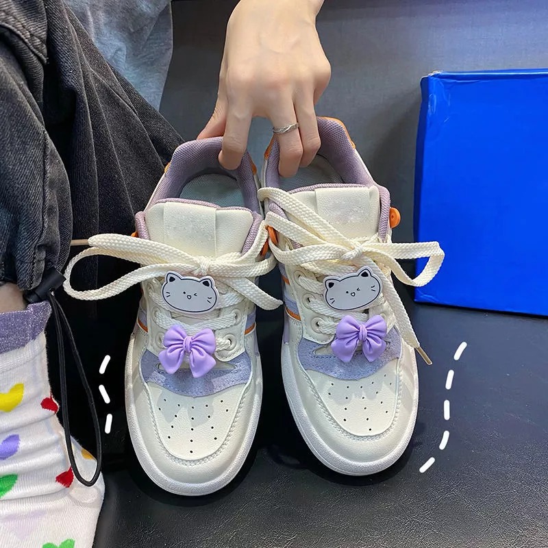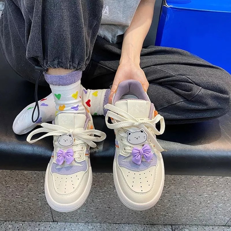 Zapatillas Mujer Kawaii Cat Bow Patchwork Shoes