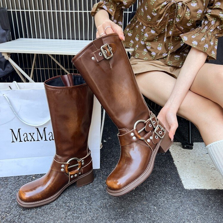 High Heel Boots In Brown & Black