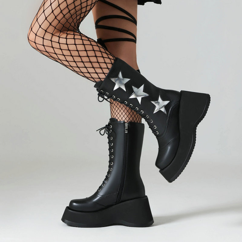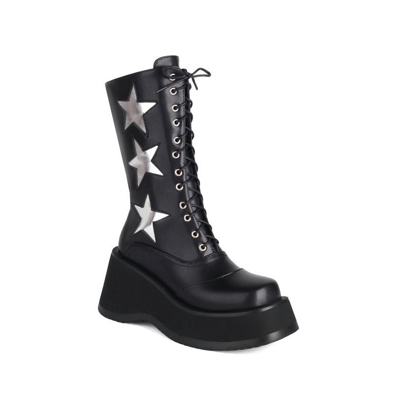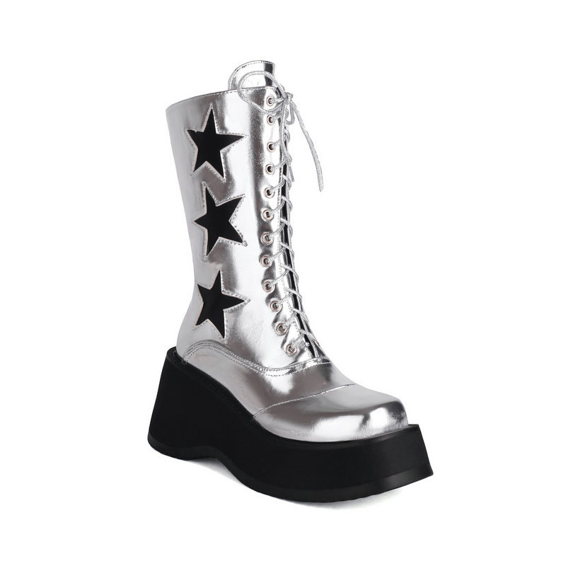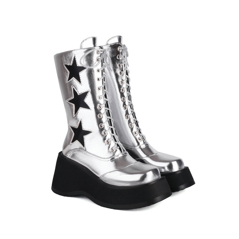 Silver Lining Star Struck Punk Boots In Silver & Black