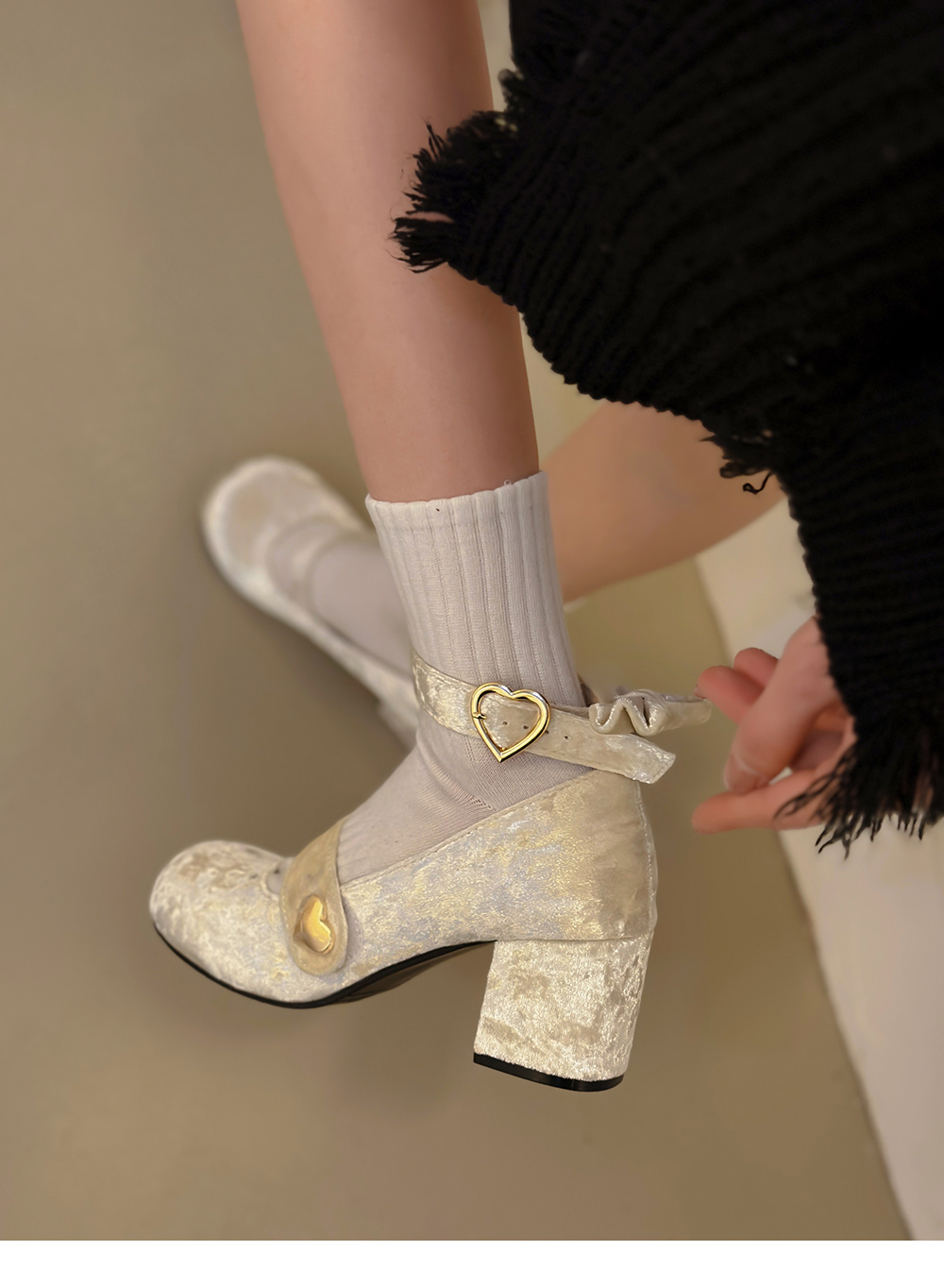 Step back in time with a touch of romance in our Vintage Velvet Little Heart Mary Jane Pumps Heels! These elegant pumps seamlessly blend vintage charm with modern allure, featuring soft velvet material and sweet little heart details. Perfect for adding a nostalgic touch to your ensemble, these Mary Jane heels are both timeless and trendy. Elevate your style with the grace and charm of our Vintage Velvet Little Heart Mary Jane Pumps Heels – where every step feels like a step back in time.