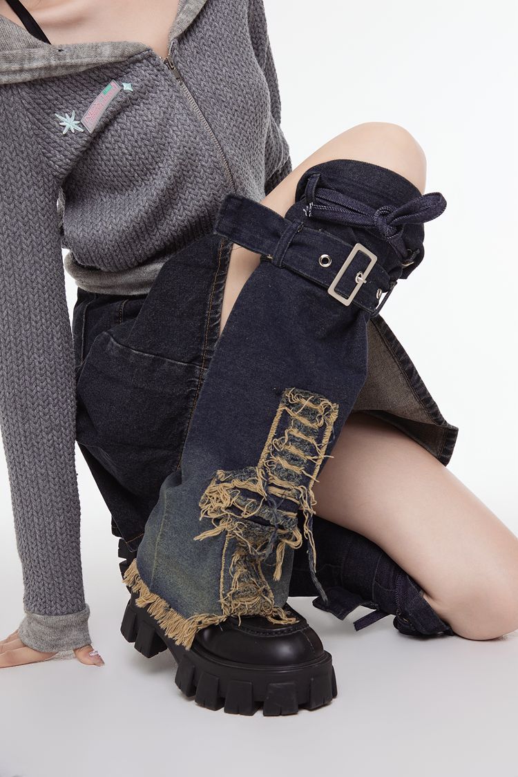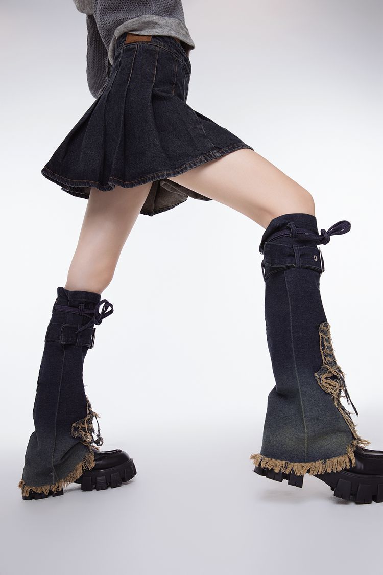 Channel your inner rockstar with our edgy Denim Cross Pattern Leg Warmers! Made from soft, comfortable denim with a cool cross design, these leg warmers add a touch of gothic flair to any outfit. Wear them knee-high for a classic look or scrunch them down for a more relaxed vibe. Perfect for layering over leggings, boots, or even dresses!