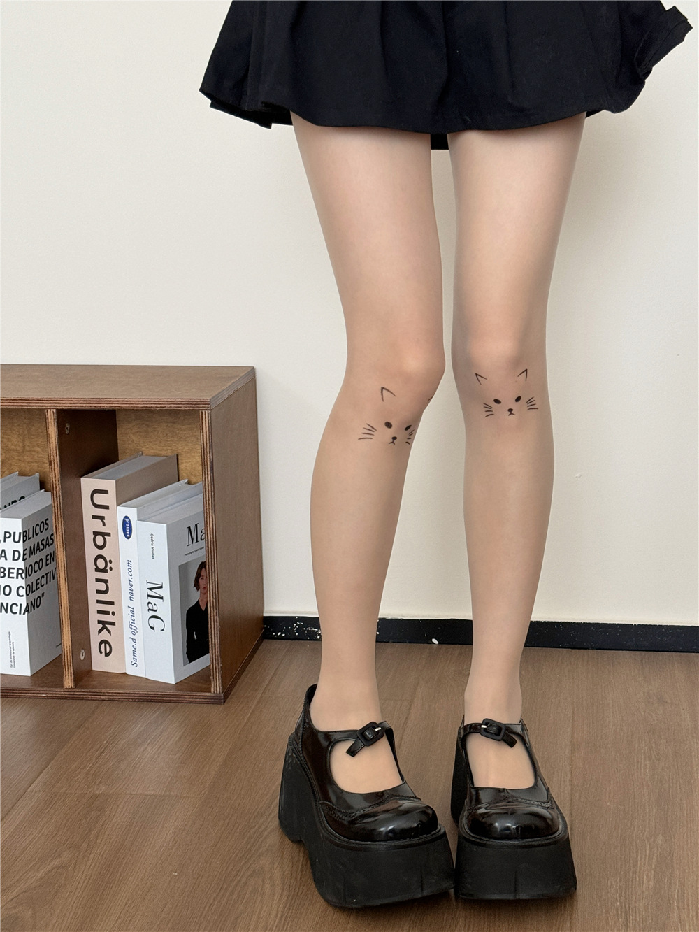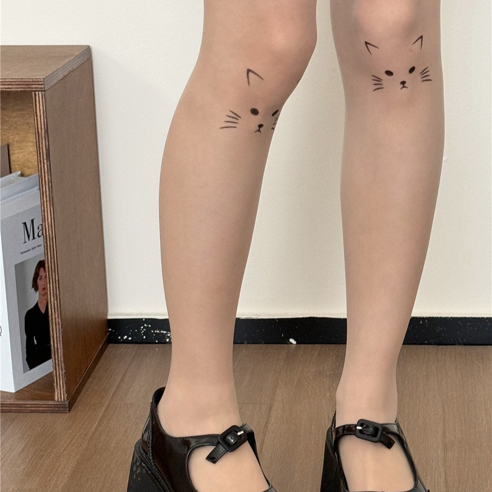 Kawaii Cat Face Tattoo Prints Tights Pantyhose Stockings