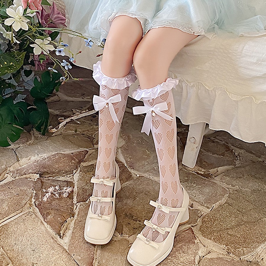 Cupid's calling! These adorable knee-high socks feature a playful pattern of hollow love hearts adorned with charming bowknots. The perfect touch of sweetness for any outfit, adding a touch of whimsy to your day.