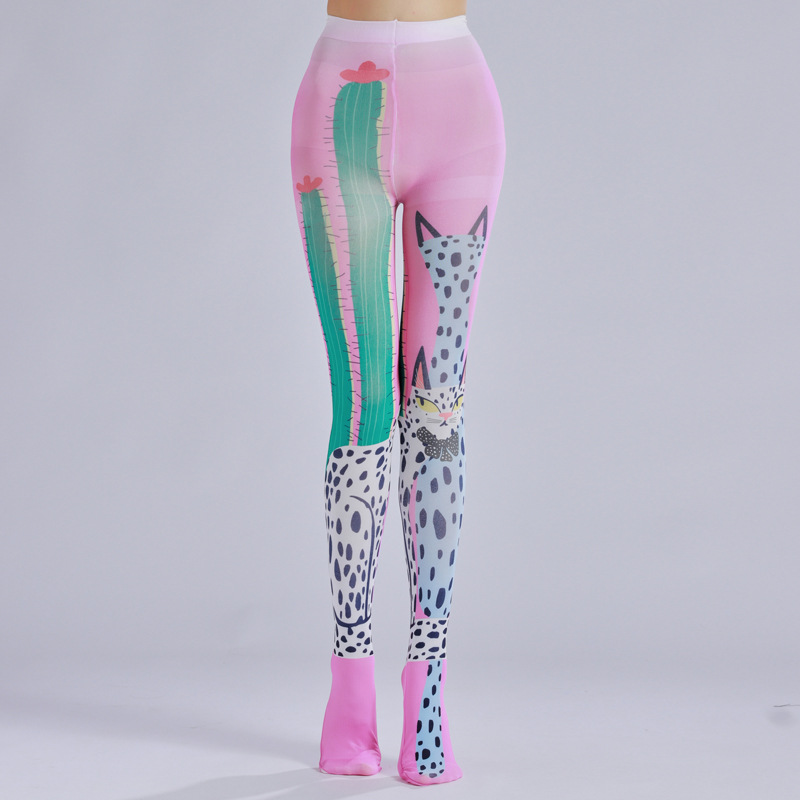 Prickly with style! These statement pantyhose feature a bold leopard print with playful cactus silhouettes. Stand out from the crowd with this fun and fierce combo.